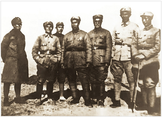 朱德总司令和129师等领导人共商团结抗战、反对摩擦大计。前排左起:杨秀峰、邓小平、朱德、刘伯承、罗瑞卿、聂荣臻(资料图片)。