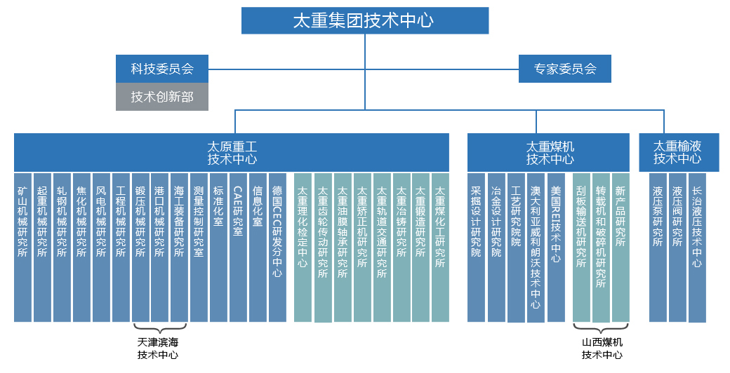太重煤机有限公司技术中心为集科研、开发、试验、标准化的省级行业技术中心,具备煤炭综采成套装备及冶金成套装备领域各种设备的设计开发能力,科技开发实力源丰水旺,属知识密集型单位。技术中心下设采煤机设计院、冶金设计院、工艺院、电气所、标准化所等单位。